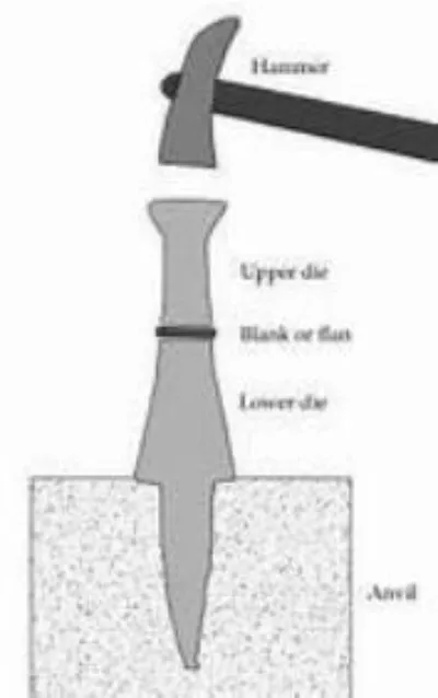 struck, the round pieces of metal the coins are made from (planchets) must be made. To make the planchet, molds are made of sand with a piece of wood that has circles the size of the